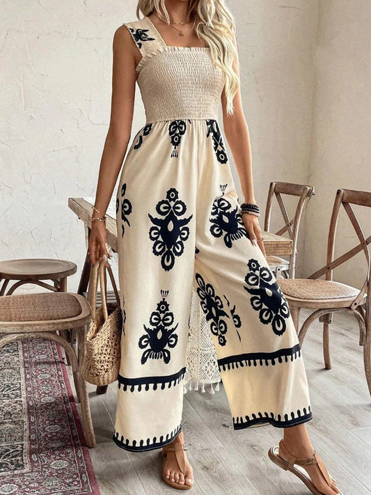 Ethnic Vintage Printed Wide Leg Jumpsuits