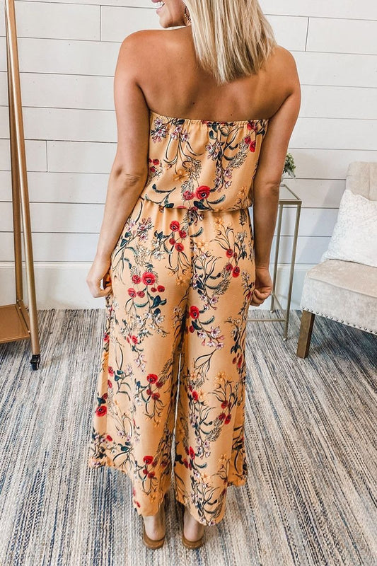 Casual Print Split Joint Strapless Straight Jumpsuits