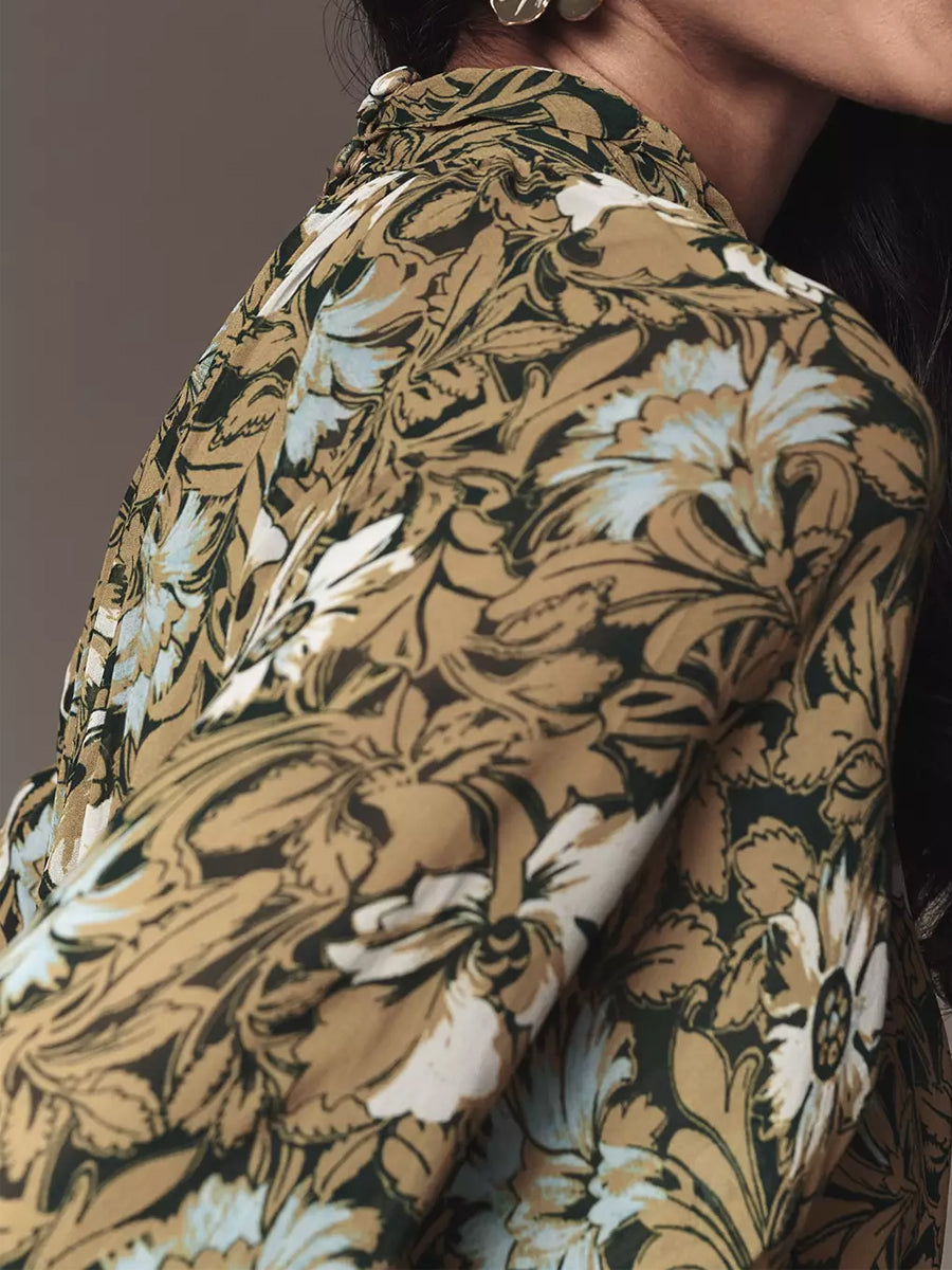 Long-Sleeve Mock-Neck Chiffon Maxi Dress