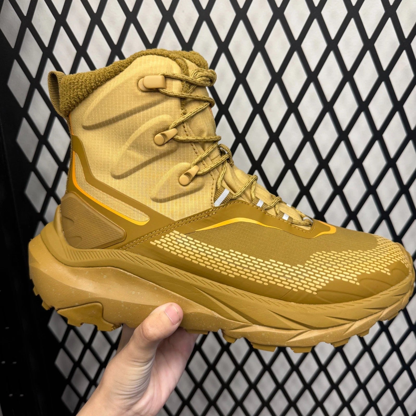 This men’s high-top hiking boot combines waterproof fabric with warm lining, meeting the needs of moisture resistance and heat retention in outdoor environments. The high-top silhouette provides stable ankle support, and the deep treaded sole offers strong traction—suitable for complex terrains like mountains or snow. It works for light hiking and winter outdoor trips, a functional and practical outdoor footwear option.